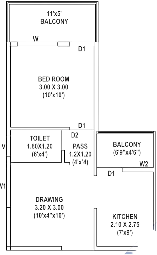 5' bedroom and 4'6" kitchen balconies for airflow and utility space.