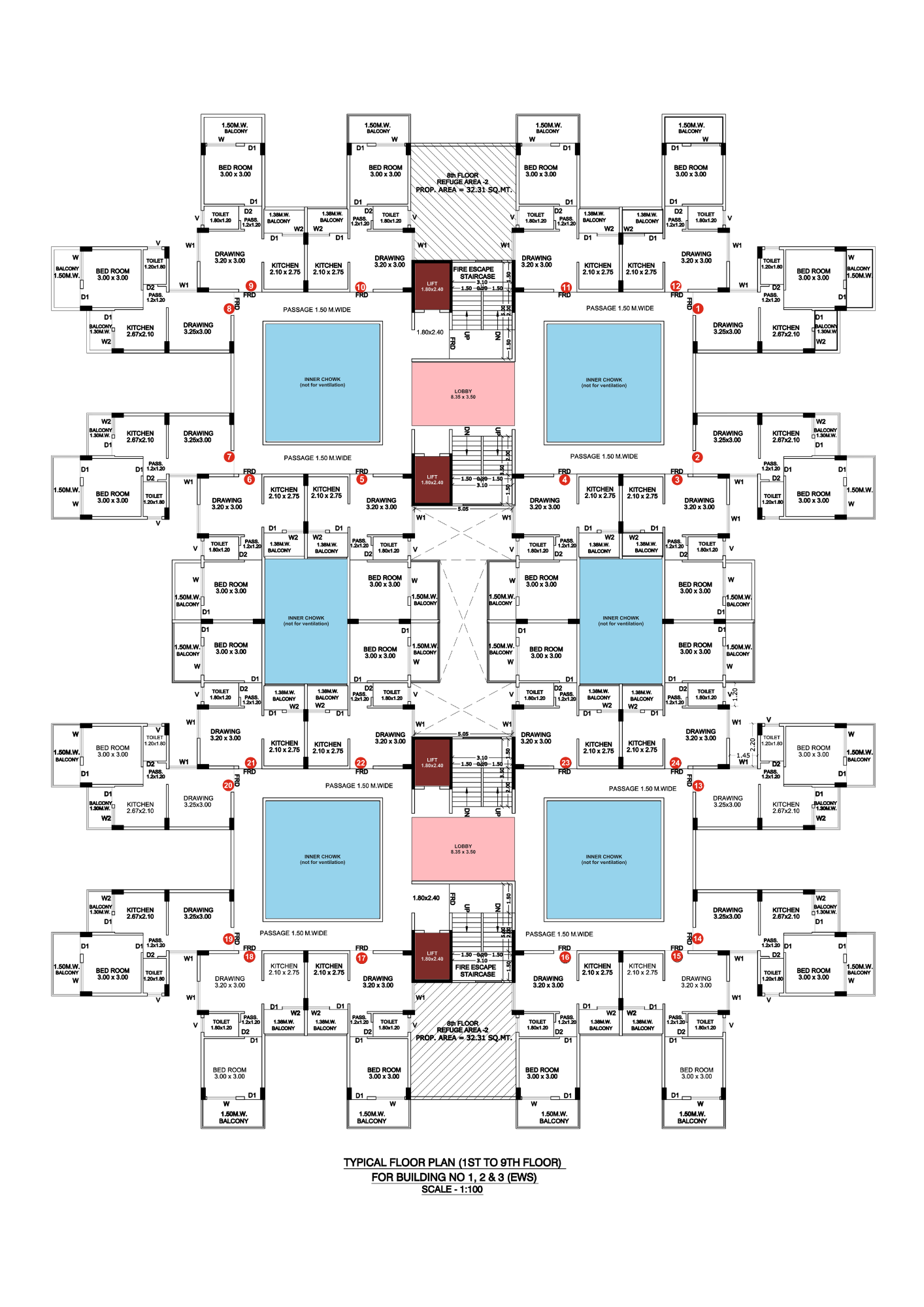 4 lifts per building and 2 fire lifts for smooth and safe vertical access.
